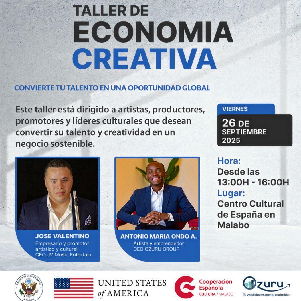 Este viernes 26 de septiembre, el Centro Cultural de España en Malabo acogerá el “Taller de Economía Creativa”, una jornada gratuita que busca empoderar a artistas, productores y líderes culturales para convertir su talento en proyectos sostenibles. El evento se desarrollará de 13:00h a 16:00h y contará con la participación de referentes del emprendimiento artístico.